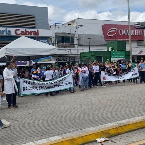 Enfermeiros e demais categorias protestam e reivindicam pagamento do piso salarial em Caruaru