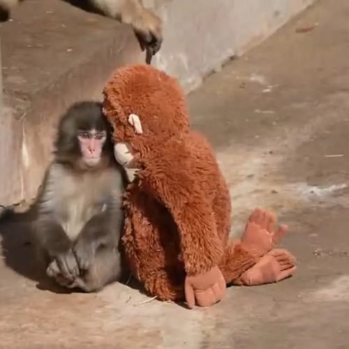 MACACO REJEITADO PELO GRUPO ENCONTRA CONFORTO EM BRINQUEDO E COMOVE REDES SOCIAIS