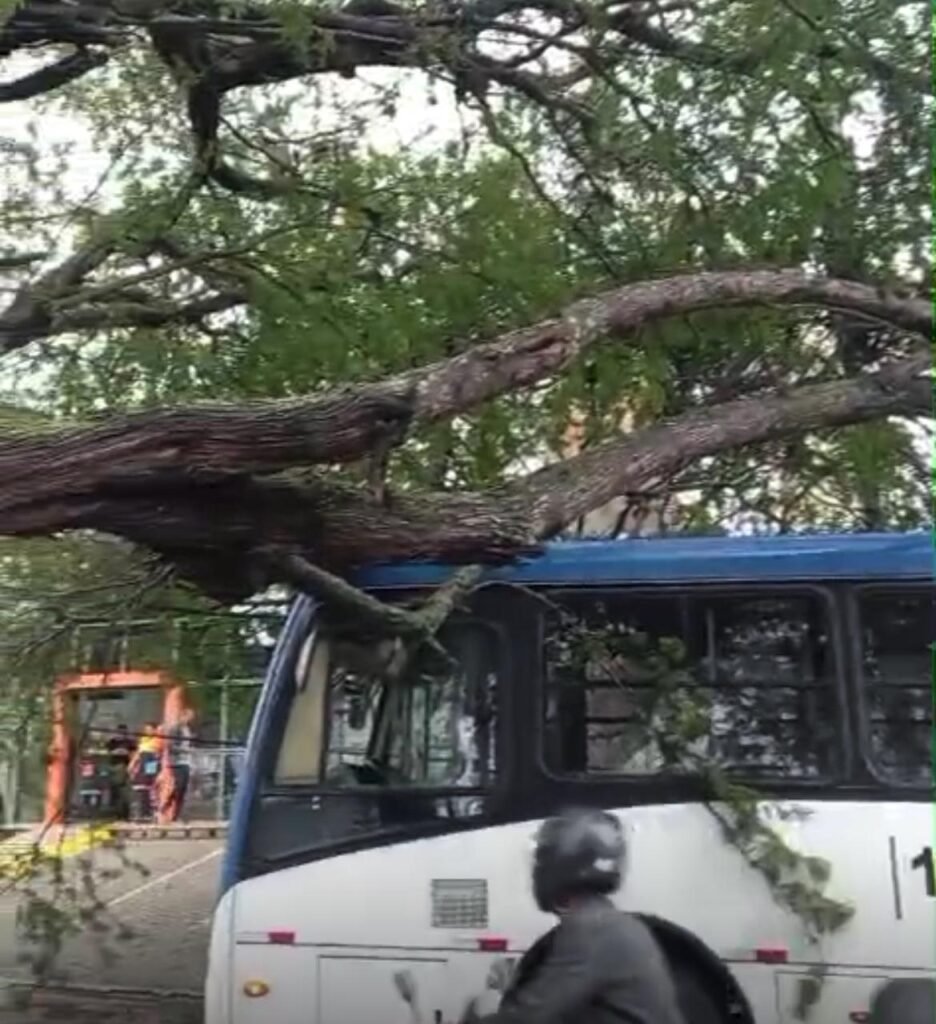 De acordo com testemunhas, a árvore atingiu um ônibus no momento da queda. Apesar do susto, não houve registro de feridos. A presença do coletivo no local acabou impedindo que a árvore bloqueasse totalmente a via, permitindo a passagem de veículos menores, como carros de passeio e motocicletas.