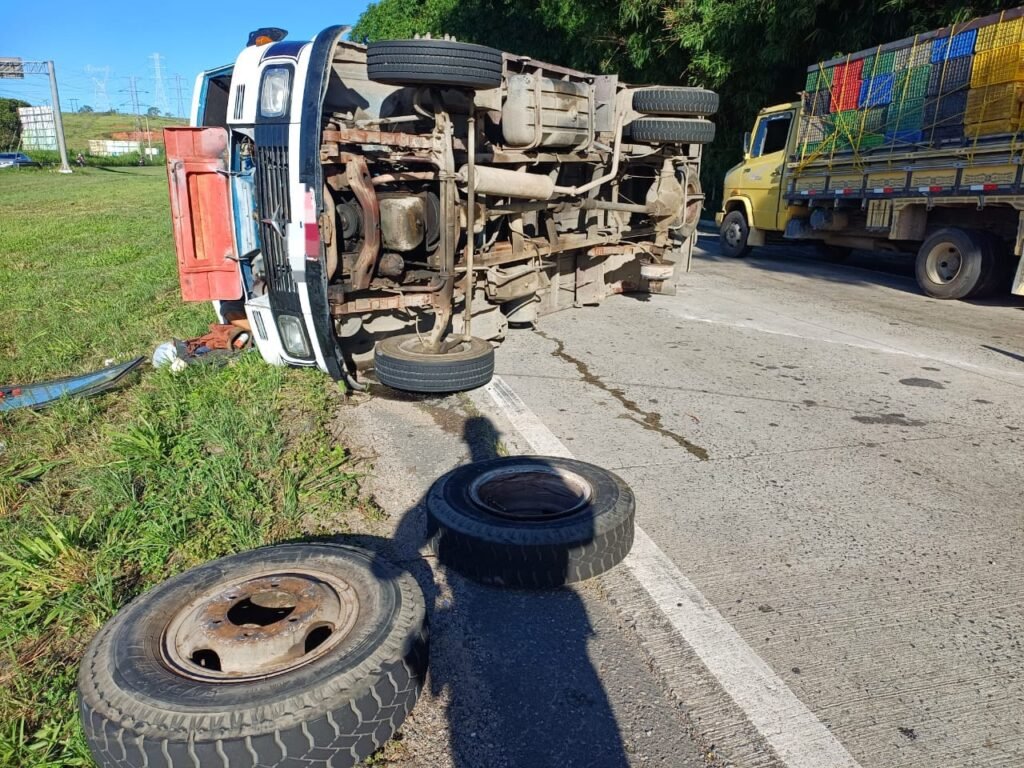 Na manhã desta quarta-feira (26), um motorista de um caminhão perdeu o controle do veículo e tombou na faixa da esquerda na BR-232 por volta das 6h da manhã, no Km 12. A suspeita é de que os parafusos do eixo direito quebraram e o veículo perdeu as rodas.