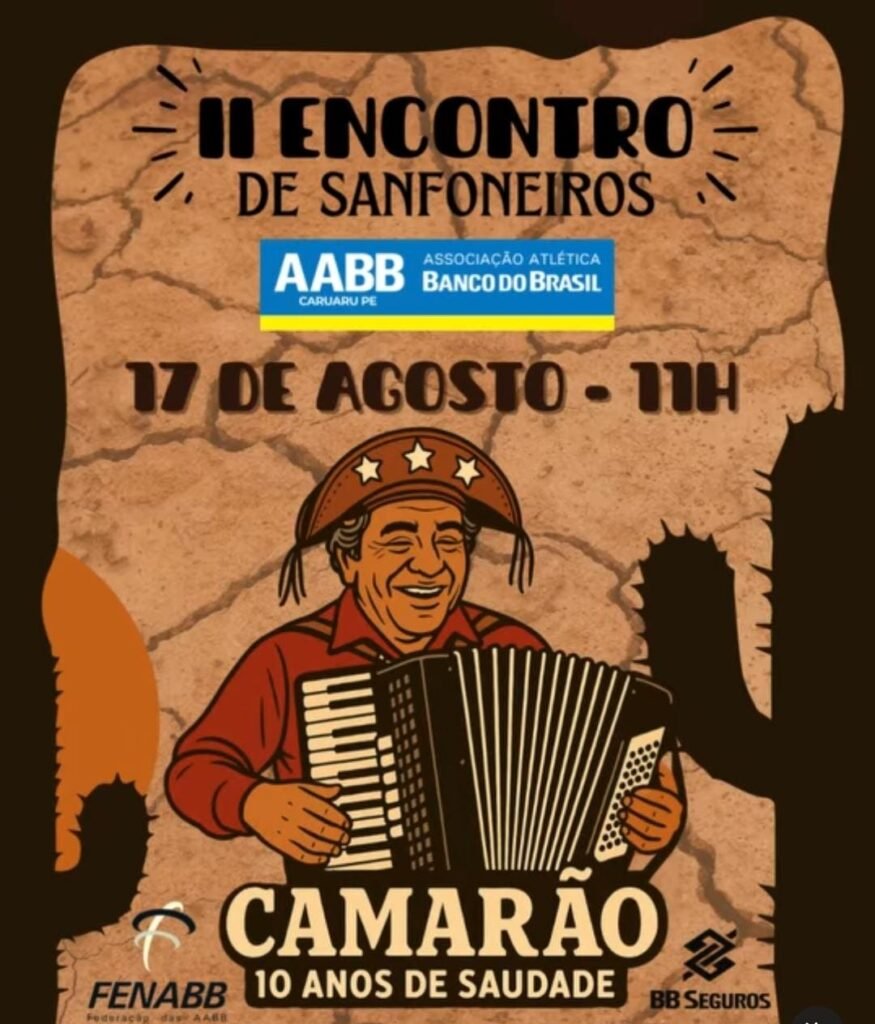 O município de Caruaru celebra no próximo domingo (17), o II Encontro de Sanfoneiros, promovido pela Associação Atlética Banco do Brasil (AABB) de Caruaru. Neste ano, o evento terá como tema: “Camarão, 10 anos de Saudade”, em homenagem ao Mestre Camarão, que é símbolo e referência para os sanfoneiros.