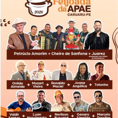 APAE CARUARU PROMOVE FEIJOADA BENEFICENTE COM SHOWS E AÇÃO SOLIDÁRIA NO DIA 26 DE ABRIL