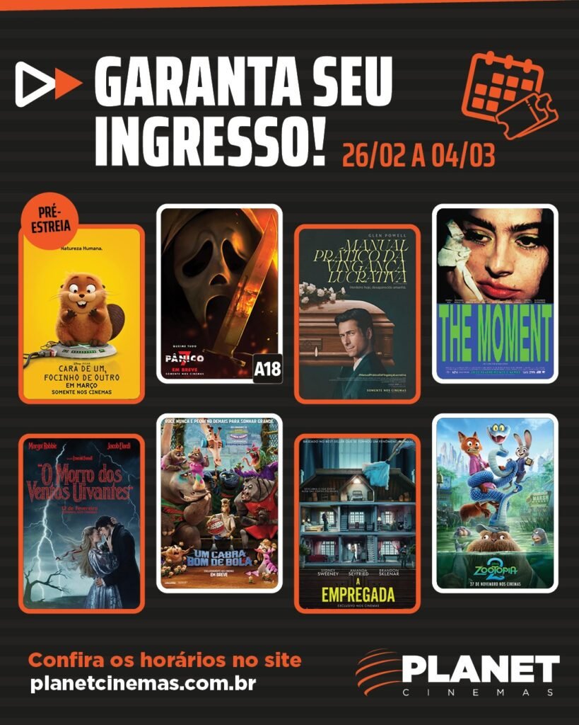 Os ingressos podem ser adquiridos no site planetcinemas.com.br, com horários e programação completa.