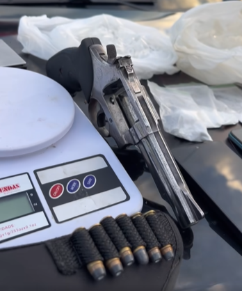 Com ele, foram encontrados 100 gramas de cocaína, 45 gramas de maconha, um revólver calibre .38 com 16 munições intactas, duas balanças de precisão e duas bolsas contendo dezenas de pinos plásticos, utilizados para embalar entorpecentes. Também foi apreendida uma motocicleta vermelha modelo XR, supostamente usada para a entrega de drogas.