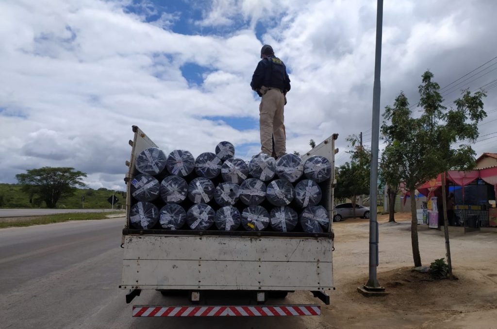 O produto estava sendo transportando em rolos, um total de 96. Aos policiais, o motorista apresentou os pedidos de compras e suas respectivas promissórias, porém disse não possuir nota fiscal da carga.