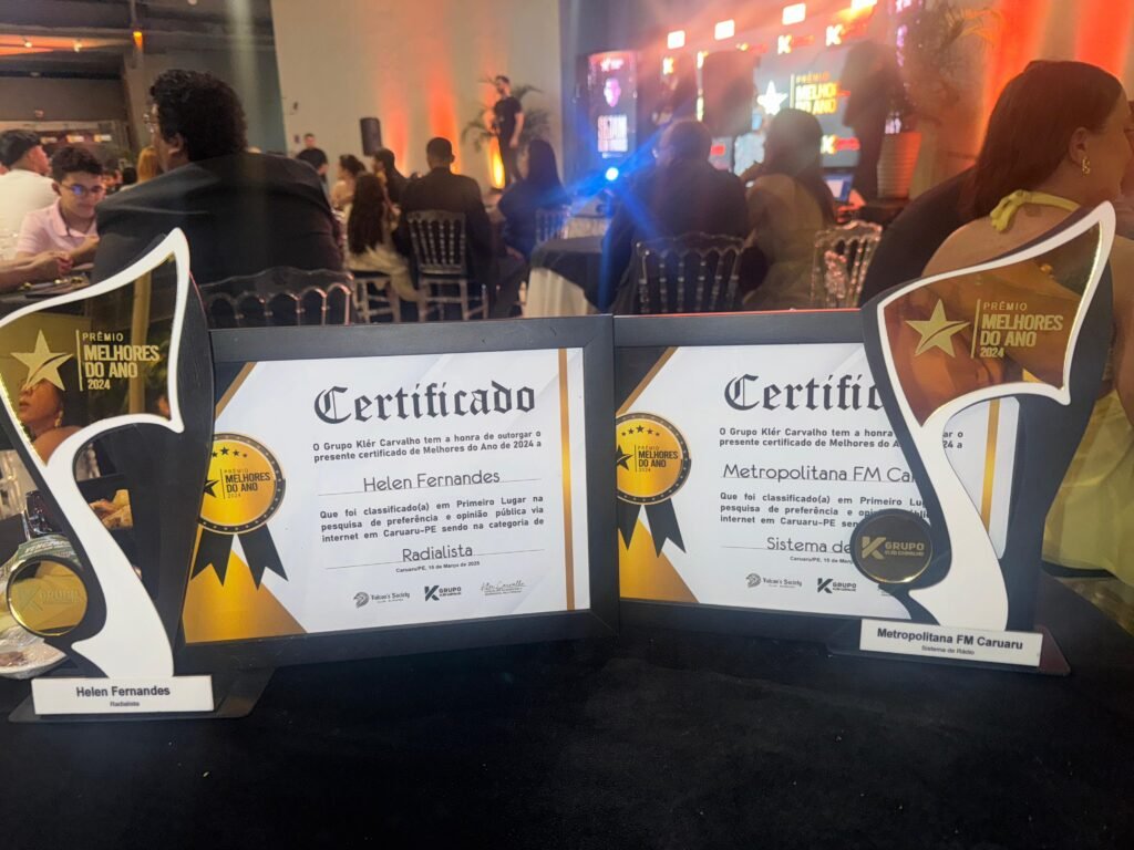 A Rádio Metropolitana FM Caruaru 94,1 conquistou o prêmio de Melhor Sistema de Rádio da Capital do Agreste. A premiação aconteceu no último sábado (15), no salão de recepções Baco’s Buffet. Na oportunidade também foi premiada a locutora da emissora, Helen Fernandes, na categoria Melhor Radialista de Caruaru. Todos os resultados são obtidos por meio de votação popular.