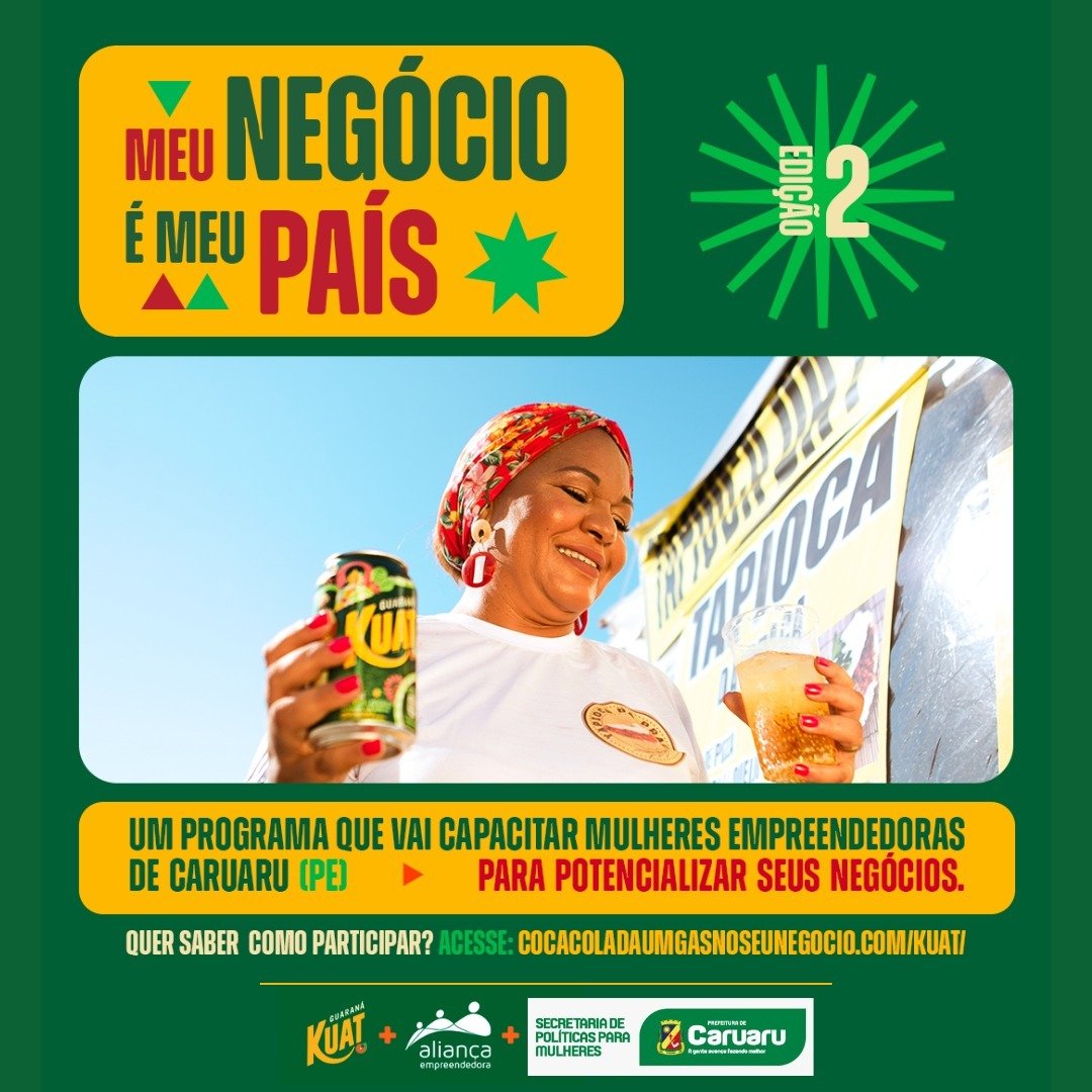 O projeto “Meu Negócio é Meu País” é realizado pela Aliança Empreendedora e Guaraná Kuat, com o apoio da Prefeitura de Caruaru, e apoia mulheres empreendedoras gratuitamente através de capacitação, aceleração com recurso financeiro e mentoria.