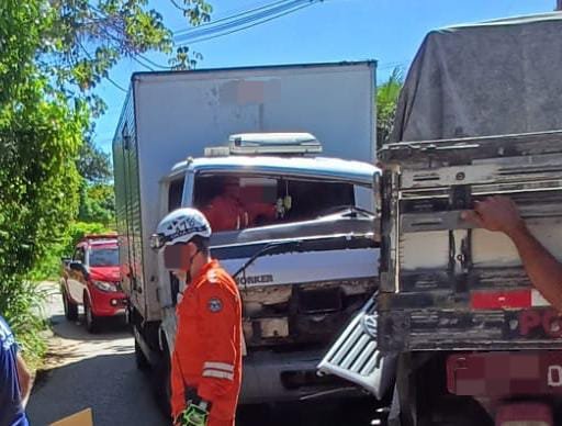 Por volta das 13h30, a central de regulação do SAMU entrou em contato com a equipe aeromédica para um resgate de um condutor que ficou preso às ferragens, após uma colisão frontal entre dois caminhões numa curva. O Corpo de Bombeiros retirou o homem do veículo e, ao chegar no local, a equipe prestou os primeiros socorros ao motorista, que apresentava fraturas na perna.
