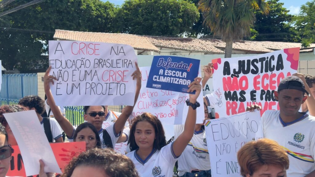 Em levantamento divulgado pelo Sintepe – Sindicato dos Trabalhadores em Educação do Estado de Pernambuco – mais de 200 escolas estaduais que realizaram algum tipo de atividade ou protesto nesta quarta-feira (09). A data foi convocada para alertar a sociedade pernambucana da importância da escola pública, visto que segundo o Censo Escolar 2023, mais de 86% dos estudantes de 15 a 17 anos matriculados no ensino médio no Estado estão nas escolas estaduais.