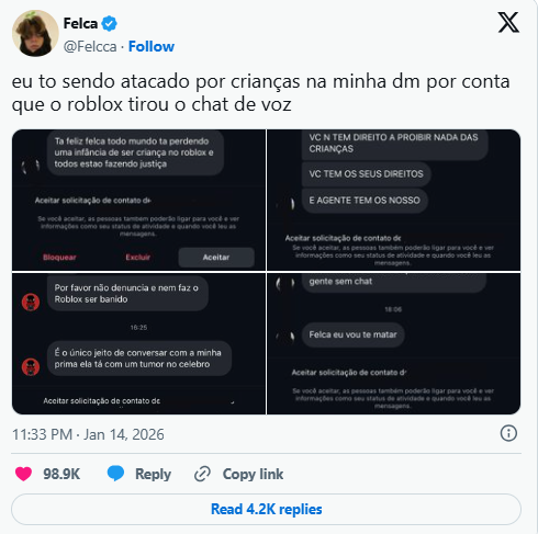 A plataforma de jogos Roblox passou a ser palco de protestos virtuais após endurecer as regras de uso do chat por crianças e adolescentes. A mudança, anunciada na última quarta-feira (7), impôs a verificação de idade e limitou a comunicação entre usuários de faixas etárias semelhantes, o que gerou reação imediata de parte da comunidade.