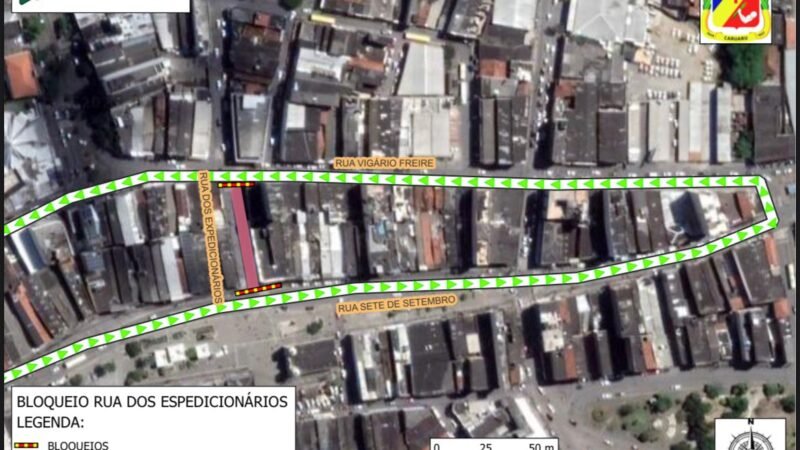 A Autarquia de Mobilidade, Trânsito e Transporte de Caruaru (AMTTC) informa que, a partir de segunda-feira (24), a rua dos Expedicionários, da esquina com a rua 15 de Novembro até o cruzamento com a Vigário Freire, estará fechada para prosseguimento das obras realizadas pela Companhia Pernambucana de Gás (Copergás).