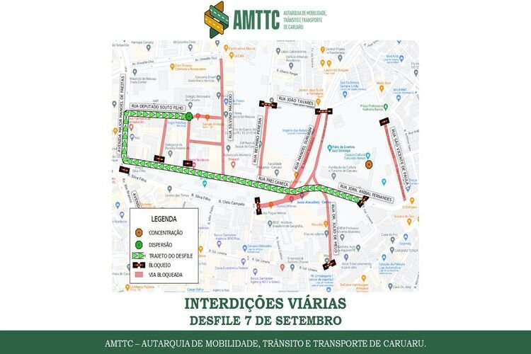 A Autarquia de Mobilidade, Trânsito e Transportes de Caruaru (AMTTC), informa que algumas ruas e avenidas, localizadas no Centro da cidade, estarão interditadas nesta quarta-feira (07), durante o desfile cívico de 07 de setembro. Conforme o mapa abaixo, as vias que serão bloqueadas são: rua Dr. Júlio de Melo, São Vicente de Paula, Agnelo Dias […]