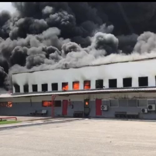 Incêndio de grandes proporções atinge fábrica de plásticos em Suape