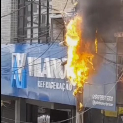 FIAÇÃO DE POSTE PEGA FOGO NA RUA VIGÁRIO FREIRE NO CENTRO DE CARUARU